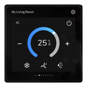 Des Weiteren verfügt die Steuereinheit über einen Näherungssensor: Befindet sich der Nutzer in unmittelbarer Nähe des Geräts, schaltet dieses sich automatisch ein. Ein integrierter Temperatursensor unterstützt Anwender darüber hinaus effektiv bei der Kontrolle der jeweiligen Raumtemperatur im Gebäude. Das KNX Touch Display fungiert als Stand-alone-Gerät und wird mit einer separaten Spannung von 24V versorgt.