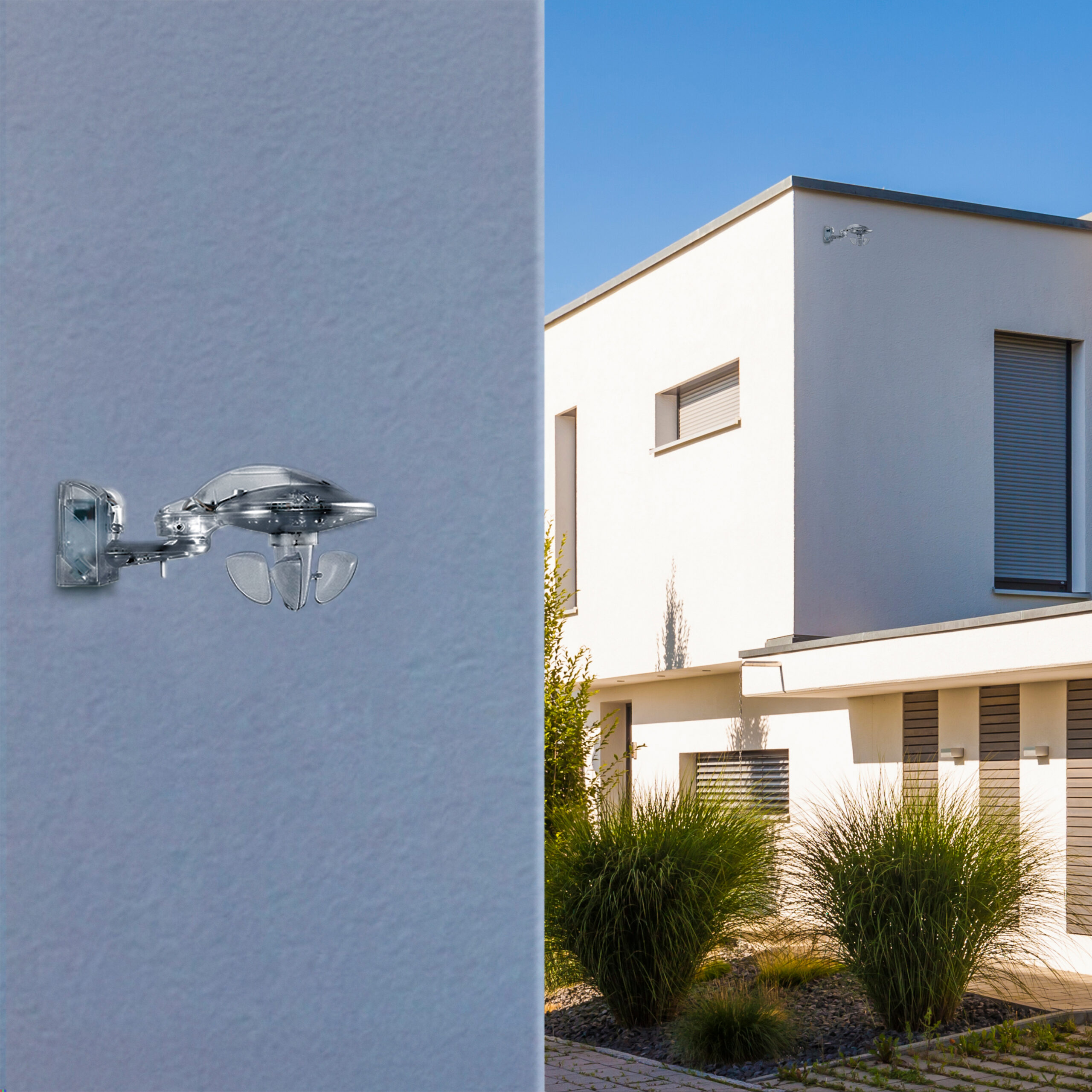 La station météo Wiser assure une protection accrue dans les espaces de vie de tout un chacun. Elle mesure le vent, la pluie, la température extérieure et l’intensité lumineuse. Les données sont ensuite transmises à un module REG, qui se charge de relever automatiquement les stores, les volets ou les stores bannes en fonction des conditions météorologiques. La station météo est reliée au module Wiser REG de 2 UM de largeur dans le distributeur par un câble pouvant atteindre 200 mètres de long (par ex. U72). Le module comprend également le raccordement de la boîte de signalisation de protection contre la grêle de l’Association des établissements cantonaux d’assurance incendie (AEAI). Cette boîte, en option, protège les bâtiments des dommages causés par la grêle. La fonction d’ombrage, qui déploie automatiquement les stores en cas de fort ensoleillement, par exemple, sera mise à disposition par simple mise à jour. De cette façon, le système gagne continuellement en fonctionnalités, même sans nouveaux appareils.