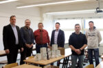 Personen v.l.n.r.: Markus König (Schneider Electric), Wieland Hering (Fachleiter BSC Fachschule Mühlhausen), Matthias Grywatsch (Schulleiter Fachschule für Technik Mühlhausen), Steven Liebig (Schneider Electric), Konstantin Preiss und Elias Godehardt (beide Meisterschüler Fachschule für Technik Mühlhausen)