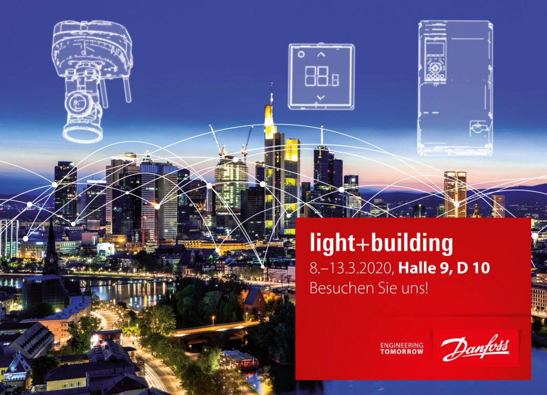 Informieren Sie sich auf der Light + Building vom 8. bis 13. März 2020 in Halle 9.0, Stand D10 über intelligente Lösungen von Danfoss für vernetzte Gebäude. Weitere Informationen rund um Danfoss auf der Light + Building 2020 finden Sie online auf www.danfoss.de/lub2020