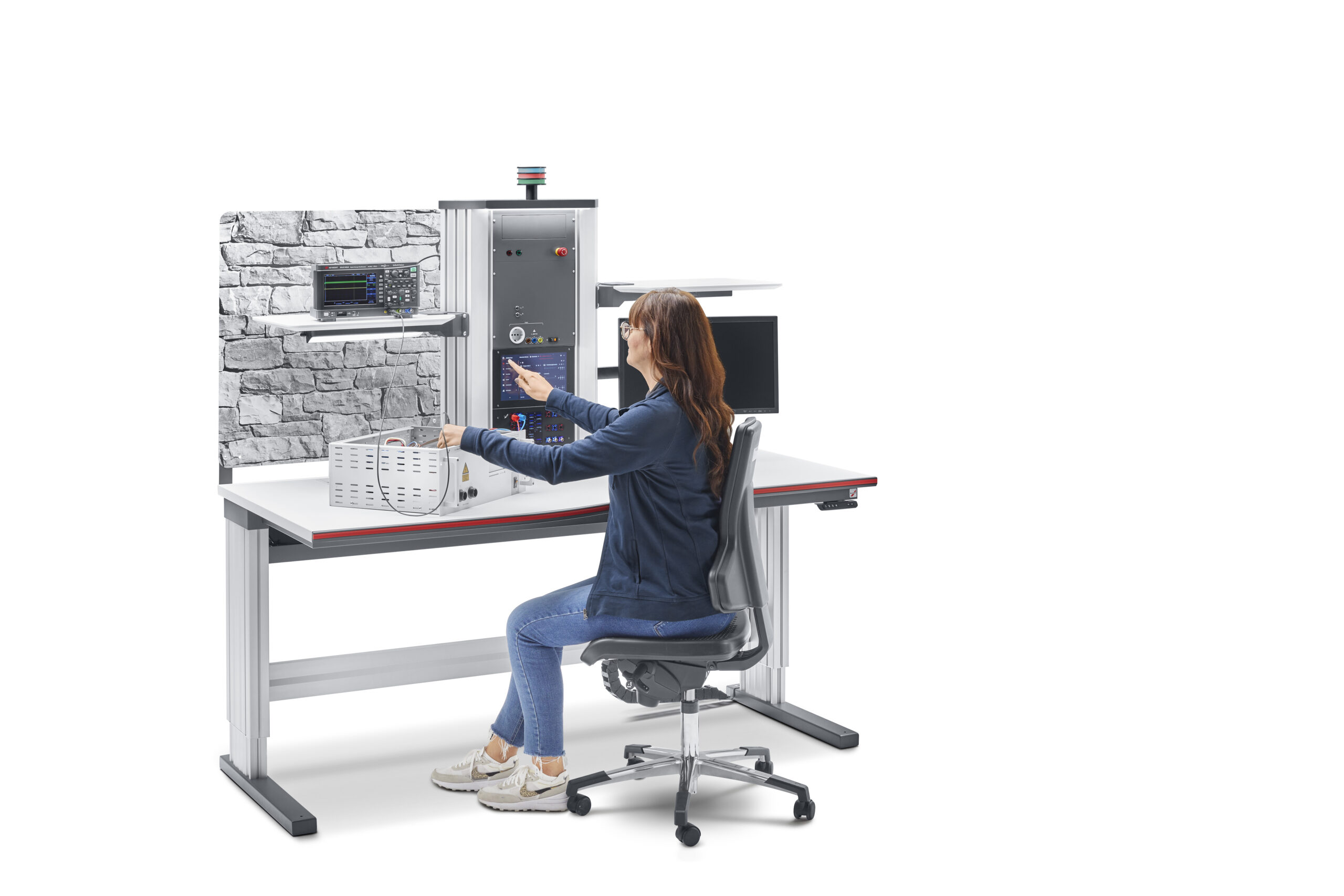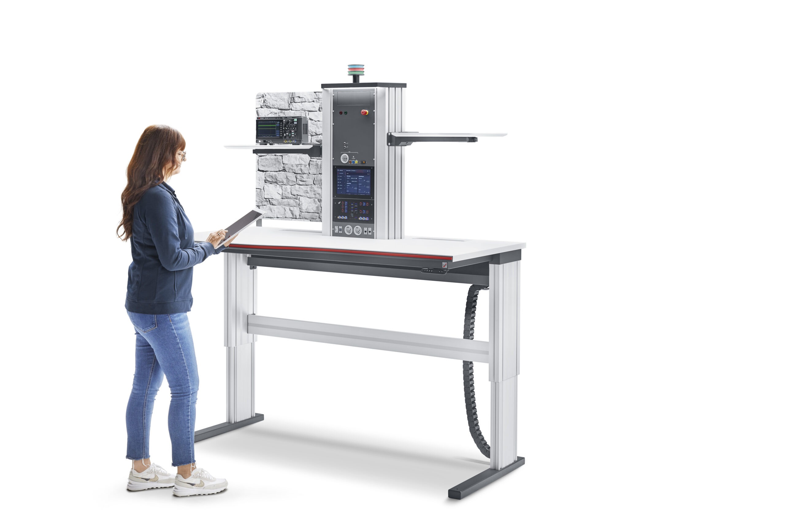 Im Bereich Arbeitsplatzlösungen zeigt ELABO mit dem primus two Elektronikarbeitsplatz ein modulares System, das höchste Ansprüche an Ergonomie und Funktionalität erfüllt. Der Tisch wird in mehreren Varianten mit unterschiedlichen Ausstattungen ausgestellt – darunter die mobile Version „main base cart“, das horizontale „cockpit“-Design sowie die höhenverstellbare „main base right“. Ein weiteres Messehighlight ist der avero Montagearbeitsplatz für die softwaregestützte Fertigung. Er lässt sich sowohl als Einzelarbeitsplatz als auch als integrierter Bestandteil einer Montagelinie einsetzen und bietet eine Vielzahl intelligenter Funktionen für den digital unterstützten Montageprozess. Dazu zählen eine visuelle Pick-by-Light-Führung für eine fehlerfreie Auswahl der Bauteile, ein direkt integrierter DC-Konstanter sowie ein Iso-Prüfgerät für elektrische Sicherheitsprüfungen. Ergänzt wird das System durch eine softwarebasierte Schraubersteuerung, bei der Drehmoment und Schraubhäufigkeit individuell definiert werden können. Die integrierte Systemintelligenz vernetzt alle Komponenten und gewährleistet dadurch einen durchgängig digitalen und kontrollierten Fertigungsablauf.
