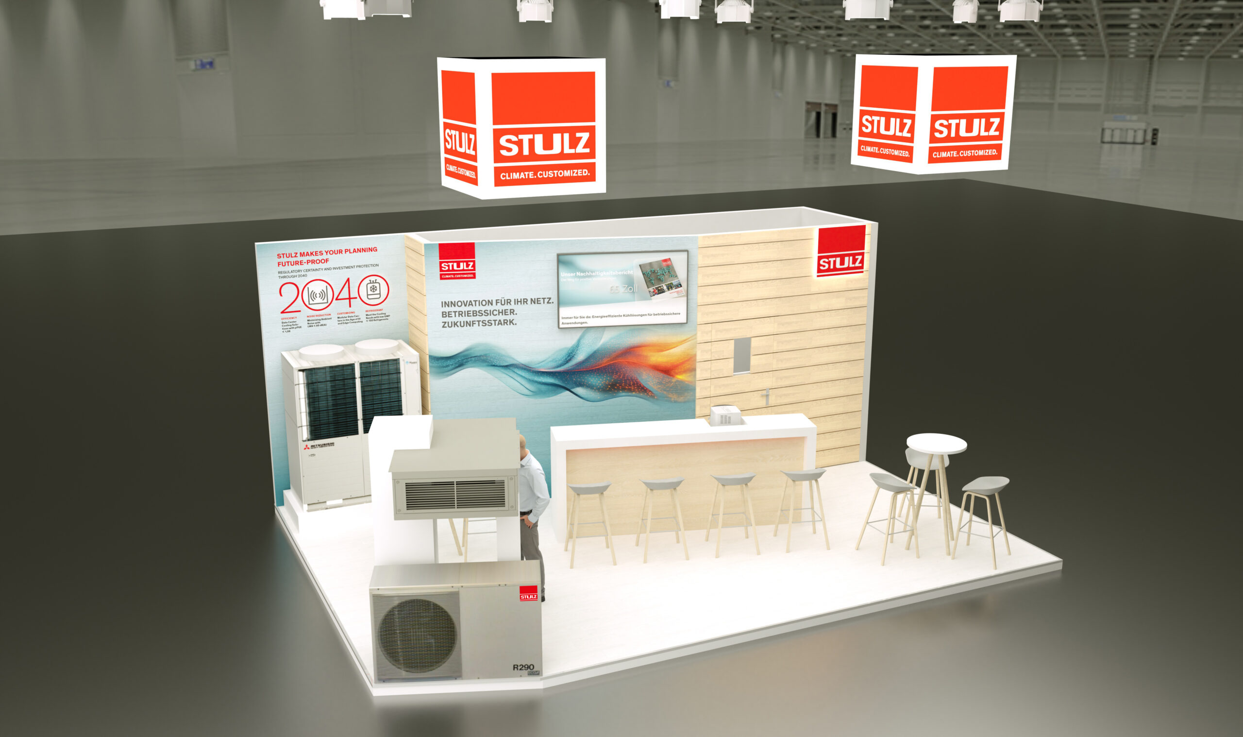 Im Zentrum des diesjährigen Messeauftritts stehen unter anderem neue Gerätegenerationen, welche die verschärften Anforderungen der F-Gase-Verordnung (gemäß EU 2024/573) erfüllen. STULZ setzt dabei konsequent auf Low-GWP-Lösungen und präsentiert unter anderem ein Außengerät von Mitsubishi Heavy Industries, das CO2 als natürliches Kältemittel nutzt. Mit einem Global Warming Potential (GWP) von 1 und einem ODP-Wert von 0 bietet dieses System eine Kälteleistung von 40 kW. Dank der kompakten Bauweise mit Abmessungen von 1.350 mm in der Breite, 730 mm in der Tiefe und einer Höhe von 1.700 mm lässt sich die Einheit hochflexibel in verschiedenste Standortumgebungen integrieren.
