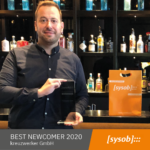 Bild 5 und 6: Als neuer Partner ausgezeichnet gestartet und mit dem sysob-Preis „Best Newcomer“ belohnt: Tilman Mürle, Vertriebsgeschäftsführer von kreuzwerker, mit dem Excellence Award.